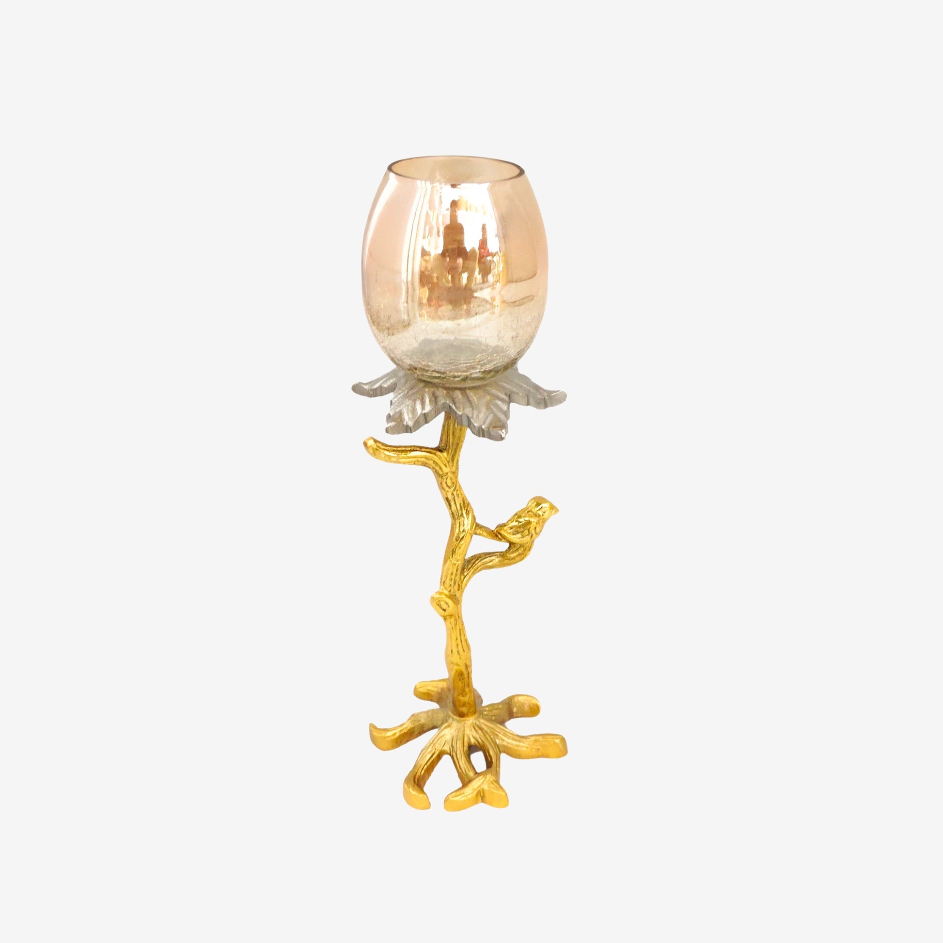 Shataj Decorative Aluminum Candle Stand with Glass in Gold