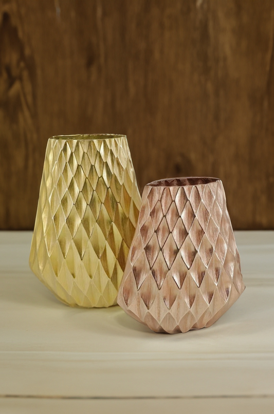 Shataj Decorative Aluminum Diamond Textured Vase in gold finish